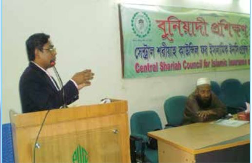 ২০০৯ সালে কাউন্সিলের বুনিয়াদী প্রশিক্ষণ কোর্সে বক্তব্য রাখছেন তাকাফুলইসলামী ইন্স্যুরেন্সলিঃ এর চেয়ারম্যান জনাব অধ্যাপক মোঃ ফজলে আজিম