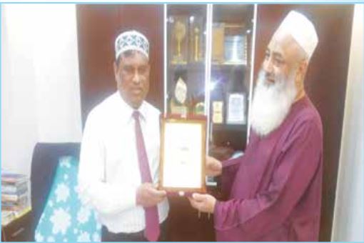 ৩ দিনব্যাপী বুনিয়াদী প্রশিক্ষণ কোর্সের বিশেষ অতিথি বীমা উন্নয়ন ও নিয়ন্ত্রণ কর্তৃপক্ষেরনির্বাহী পরিচালক (যুগ্ম সচিব) জনাব খলিল আহমদকে ক্রেষ্ট প্রদান করছেন কাউন্সিলেরসেক্রেটারী জেনারেল অধ্যাপক মাওঃ এবিএম মাছুম বিল্লাহ