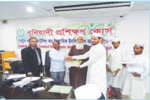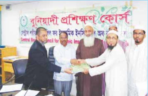 বুনিয়াদী প্রশিক্ষণ কোর্স মার্চ- ২০১৭ এর সমাপনী অনুষ্ঠানে অংশগ্রহণকারী প্রশিক্ষণার্থীদের মধ্যে সনদপত্র প্রদান করছেন প্রধান অতিথি সেন্ট্রাল শরীয়াহ্কাউন্সিলের চেয়ারম্যান অধ্যক্ষ সাইয়্যেদ কামালুদ্দীন জাফরীএবং বিশেষ অতিথি বাংলাদেশ ইনস্যুরেন্স ফোরাম এর প্রেসিডেন্ট ও পপুলারলাইফ ইনস্যুরেন্স কোম্পানী লিমিটেড এর ব্যবস্থাপনা পরিচালক ও সিইও জনাববিএম ইউসুফ আলী